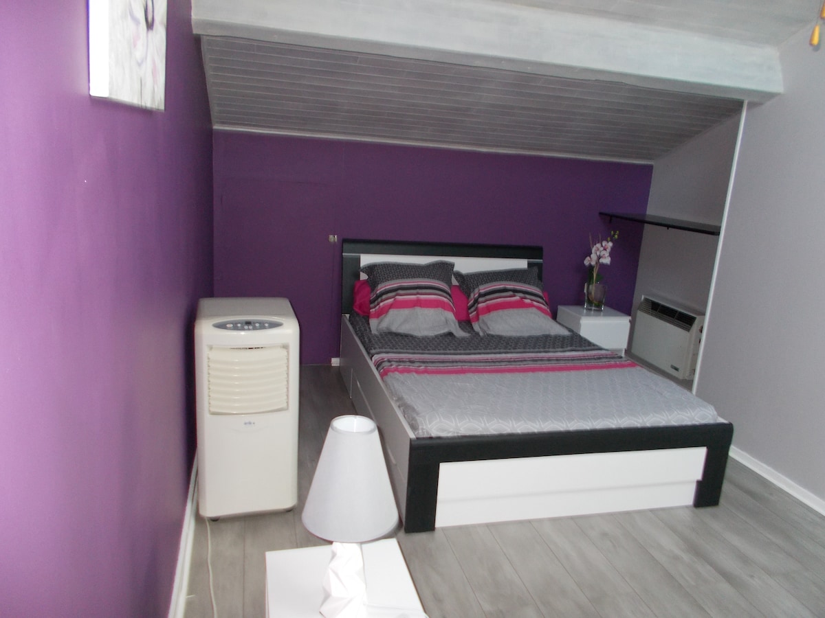 Dormez dans notre chambre d'hôte arty et cosy pour une expérience unique et dépaysante entièrement eco-responsable. La chambre est confortable et accueillante, avec un grand lit, un bureau, un fauteuil et une commode. Elle se situe au rez-de-chaussée de notre triplex, dans un espace privé de l'appartement, avec toilettes et salle de bain privés. Le petit déjeuner est offert, ainsi qu'une place de parking dans la résidence.