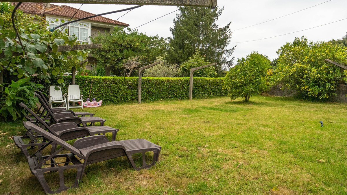 Chalet en milieu rural, entièrement neuf et moderne, 1 200 m de jardin avec piscine, barbecue et table de ping-pong. Idéal pour les couples, les familles et les groupes. Très bien relié à une voie rapide pour les zones de plage (Sanxenxo, A Lanzada, O Grove, Combarro, île d'Arousa..) et des villes comme Saint-Jacques-de-Compostelle. Il est à 5 minutes de la ville de Pontevedra. À proximité, vous trouverez un centre équestre et divers furanchos (nourriture typique) pour manger. Possibilité d'accueillir jusqu'à 12 personnes.