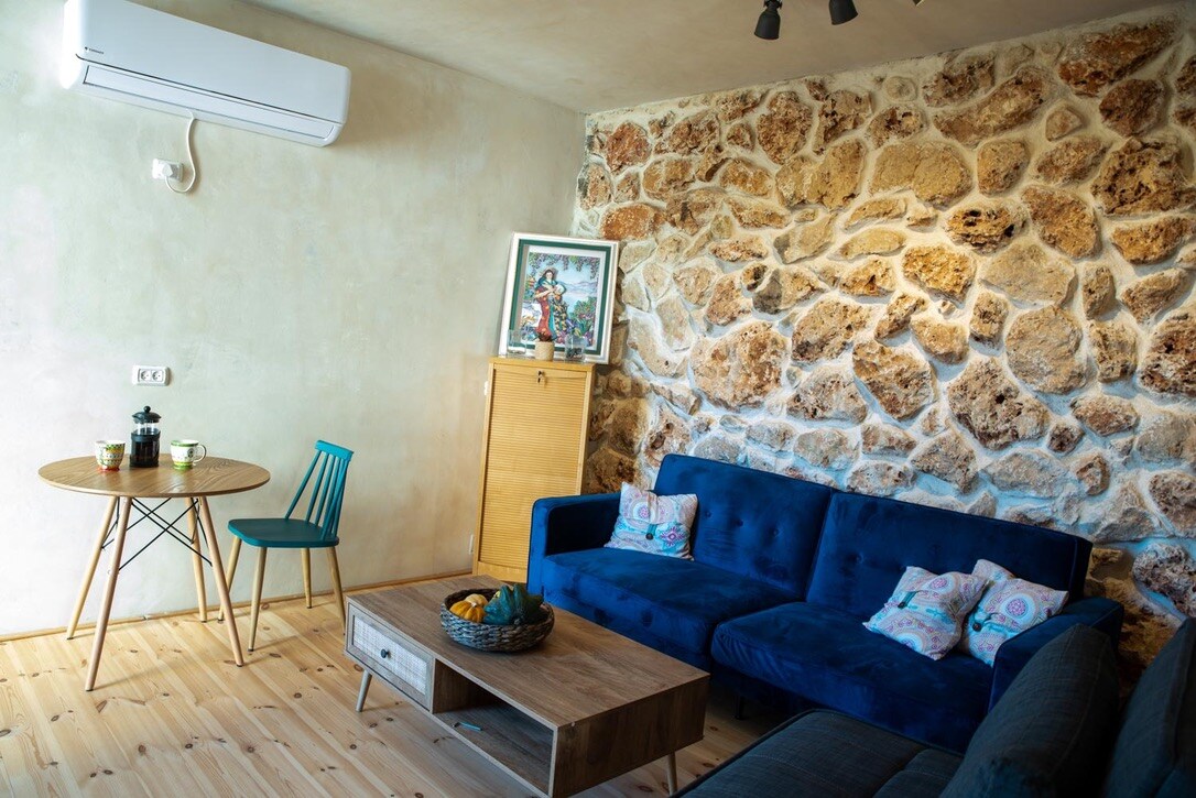 notre duplex allie charme rustique et luxe moderne. Le spectaculaire plafond de 6 mètres de haut crée un sentiment extraordinaire d'espace et de lumière, tandis que le vaste balcon de 28 m² offre une vue à couper le souffle. À seulement 2 km de la Méditerranée, vous découvrirez le rare plaisir de la montagne et de la mer. La cuisine rustique entièrement équipée et les chambres spacieuses assurent le confort et l'élégance partout. La beauté naturelle du nord d'Israël rencontre un design bien pensé et une hospitalité authentique.