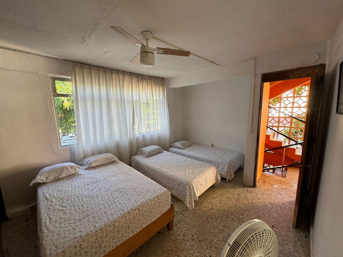 C'est un logement situé au cœur de la zone traditionnelle du port d'Acapulco. A 3 pâtés de maisons de la plage et de Zócalo, Malecon, Cathédrale, Terminal Maritime, Fort de San Diego, etc. C'est un quartier commerçant, où vous trouverez des supermarchés, des pharmacies, des restaurants, des oxxos, des mélanges, des marchés d'artisanat, des magasins de vêtements, des magasins de chaussures, entre autres commodités. La chambre est idéale pour ceux qui aiment voyager avec leurs animaux de compagnie, car elle dispose d'une cour très spacieuse.