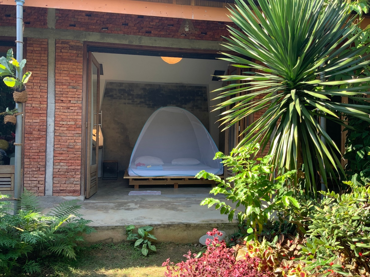 Bienvenue à la Villa di Bukit Lawang. Une petite maison de vacances confortable, lumineuse et aérée, où vous vous sentez à l'intérieur et à l'extérieur en même temps. La construction ouverte avec la cour verte vous invite à vous attarder. Profitez de douces nuits tropicales sous un ciel étoilé et de douches de pluie tropicale. Profitez, ressentez et expérimentez la vie quotidienne locale, la culture fascinante, les gens sympathiques et la faune et la flore à couper le souffle de la forêt tropicale humide autour de Bukit Lawang.