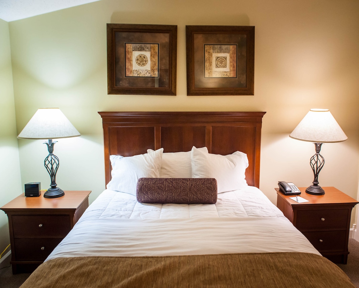La base idéale pour explorer tout ce que le nord du Michigan a à offrir ! Situé à quelques minutes du centre-ville de Traverse City, un condo privé sur le terrain du Grand Travese Resort and Spa! Nous sommes reliés au complexe par un tunnel, il n'est donc pas nécessaire de conduire ou de marcher à l'extérieur pour accéder à tous les restaurants/bars, boutiques, salles de réception ou spa! Le paradis d'un golfeur est juste devant notre porte ! Notre condo est équipé d'une cuisine complète, d'une connexion Wi-Fi, d'une télévision intelligente pour le streaming et d'une vue sur la baie de Grand Traverse!