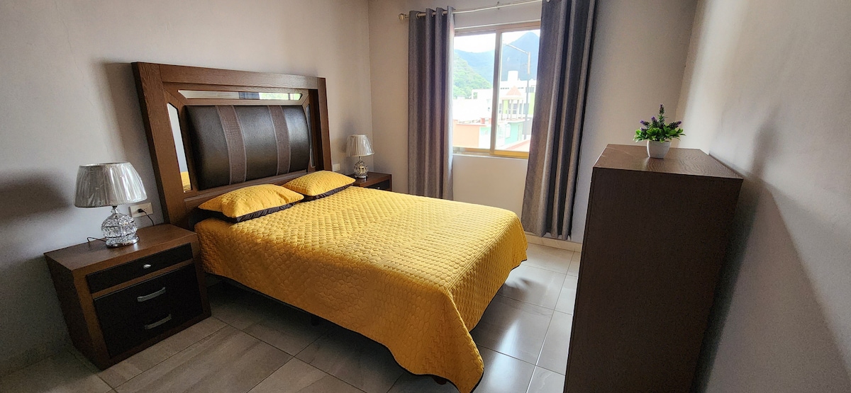Profitez de la chaleur de cet hébergement calme et central. Nous avons une chambre avec un lit double, la climatisation et la télévision, un salon avec cuisine équipée (réfrigérateur et cuisinière) et un parking pour une voiture moyenne. Nous sommes situés à 5 minutes à pied des attractions touristiques du centre. (Paseo Colón, Paseo del Río, Alameda, téléphérique) Séjournez dans l'un des quartiers les plus calmes et les plus sûrs d'Orizaba où vous passerez un après-midi agréable avec la belle vue sur le téléphérique.