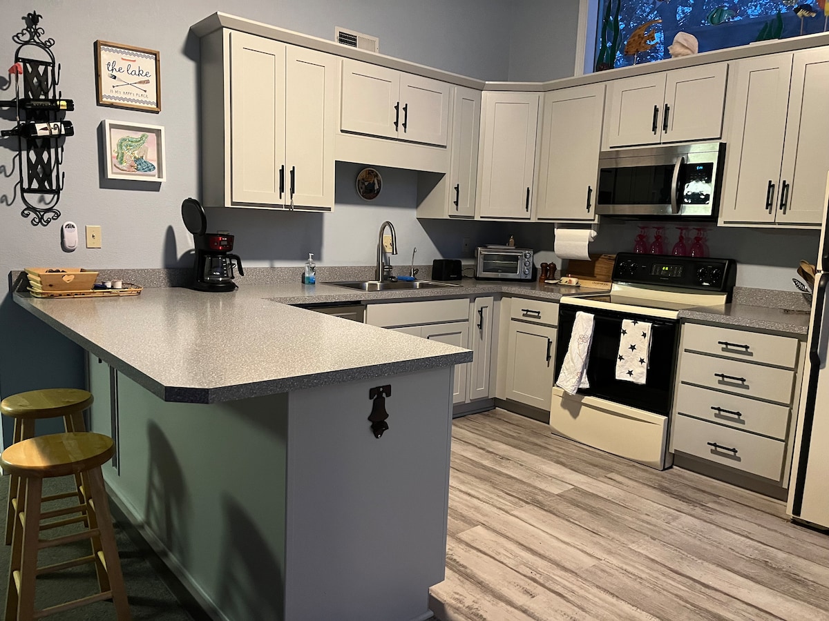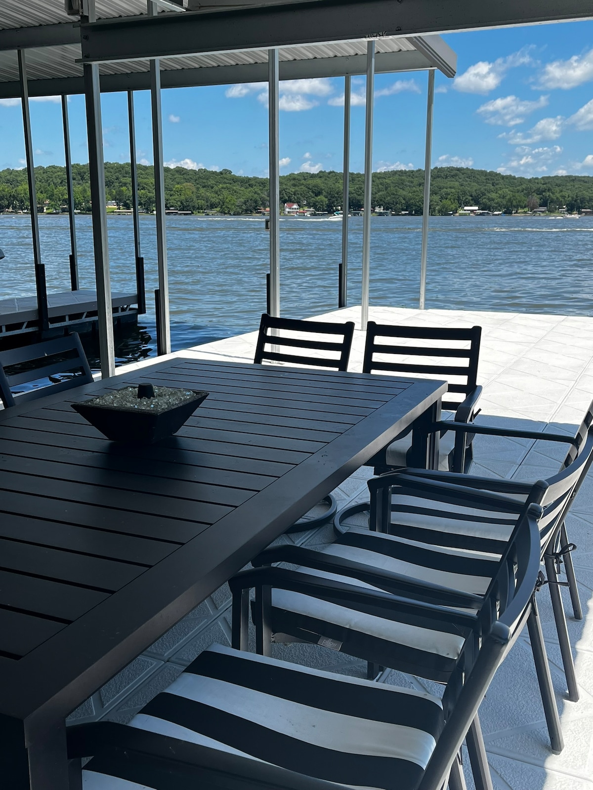 Logement construit en 2021 avec tous les équipements dont vous pourriez avoir besoin. Espaces de vie spacieux, parfaits pour les familles ou les groupes - salles de bain privées pour chaque chambre et beaucoup d'espace à manger et à l'extérieur pour s'amuser et se divertir. Foyers extérieurs à la pointe et au patio. Une propriété très unique située sur un point avec une vue incroyable sur le canal principal, deux directions. Idéal pour nager, pêcher ou passer du temps à regarder des jeux sur le quai. À 2 h 30 de KC, Wi-Fi tout autour de la propriété.