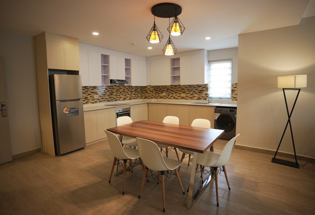 Achevée en 2022, cette villa dispose d'un espace ouvert avec de grandes fenêtres, de chambres spacieuses avec salle de bain privée, de finitions luxueuses modernes et de tout nouveaux meubles. L'environnement spacieux en fait un endroit idéal pour les familles et les amis pour partager des logements à long terme. Cet établissement est situé à l'intérieur d'une communauté sécurisée surveillée par la sécurité du quartier 24h/24. De plus, la villa elle-même est fermée à l'intérieur de la propriété avec suffisamment d'espace pour un stationnement privé jusqu'à 4 véhicules.