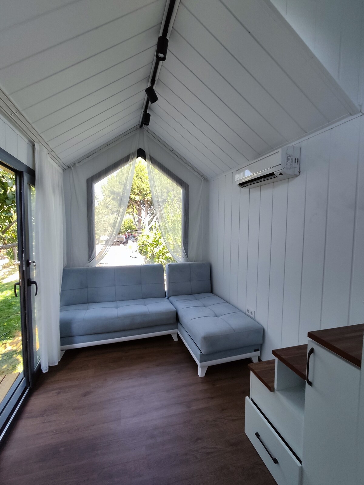 Expérience Tiny House en pleine nature à Dikili Une petite micro-maison où vous pouvez séjourner dans un verger vous attend tout en visitant les belles baies de Dikili. Ce sera une escapade inoubliable où vous pourrez vous connecter avec la nature. - Lit 120×200 à l'étage - Lit de 150×200 de large dans la chambre - Barbecue et brasero - Ustensiles de cuisine entièrement équipés - Plage de Dikili Blue Flag : 5 km, 10 minutes - Plage d'Ayvalik Sarımsaklı : 34 km, 30 minutes - Baie Bademli : 15-20 km, 25-30 minutes