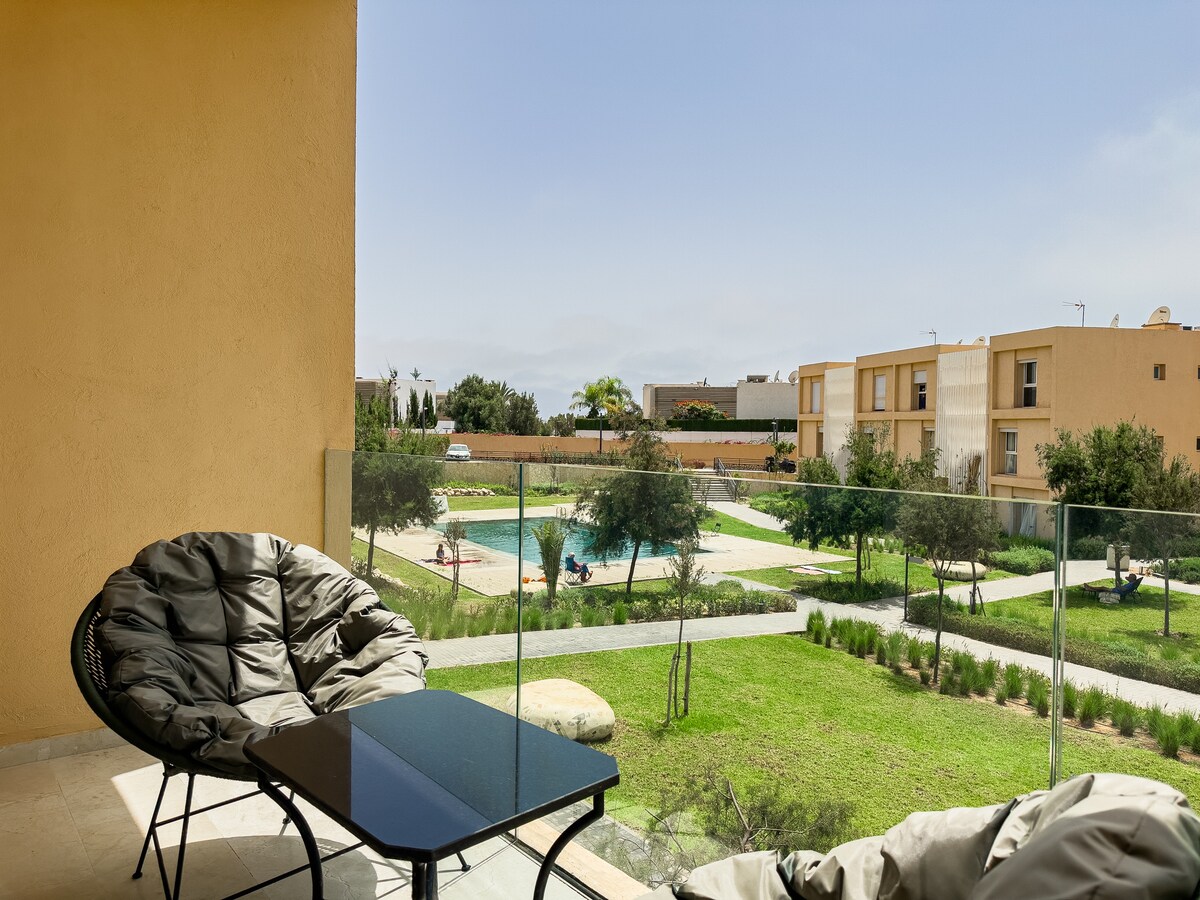 superbe appartement lumineuse de plein pied, situé au rez-de-chaussée dans une résidence flambant neuve au cœur de taghazout bay disposant de: - accès au pied a la plage 10/15min. - 4 piscines (dont 2 pour enfants ). - parking gratuit. - sécurité 24h/7j. composé d'une chambre, cuisine américaine, 2 sdb, salon, table a manger et d'un balcon avec espace vert. idéal pour les familles, golfeurs, surfeurs et adapte du soleil et de la plage.