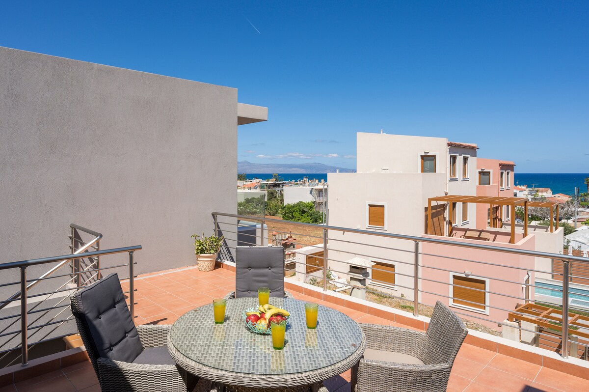 Fait partie du complexe Alectrona Living, en Crète. Un tout nouvel appartement de luxe juste au bord de la colline de Platanias, à proximité du centre de Platanias mais loin de la foule et du bruit de la rue principale. La vue est à couper le souffle, le son des vagues et les couleurs de chaque coucher de soleil rechargeront vos batteries et détendront votre esprit. L'un des points forts du séjour ici est la piscine commune, qui offre une vue imprenable sur la mer Égée.