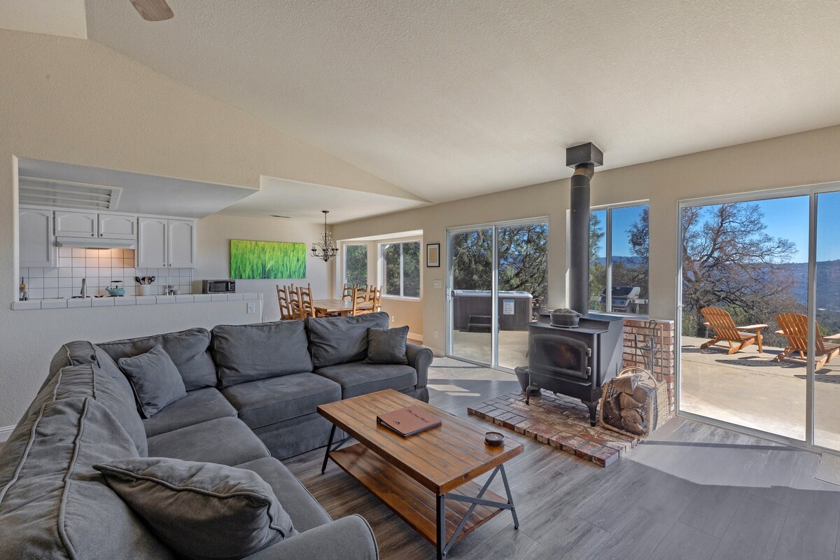 VUES MAJESTUEUSES GARANTIES... ! Évadez-vous dans notre retraite de montagne, enveloppée par la beauté des montagnes de la Sierra. À seulement 17 miles du parc national de Yosemite et à deux pas du lac Bass, ce havre offre non seulement l'isolement, mais aussi le confort et la commodité. Vous apprécierez de nombreuses places de stationnement, une connexion Wi-Fi, des espaces de vie généreux et des vues panoramiques imprenables sur les montagnes. Pendant votre séjour, attendez-vous à de délicieuses rencontres avec la faune locale, ajoutant une touche de charme de la nature à votre retraite.