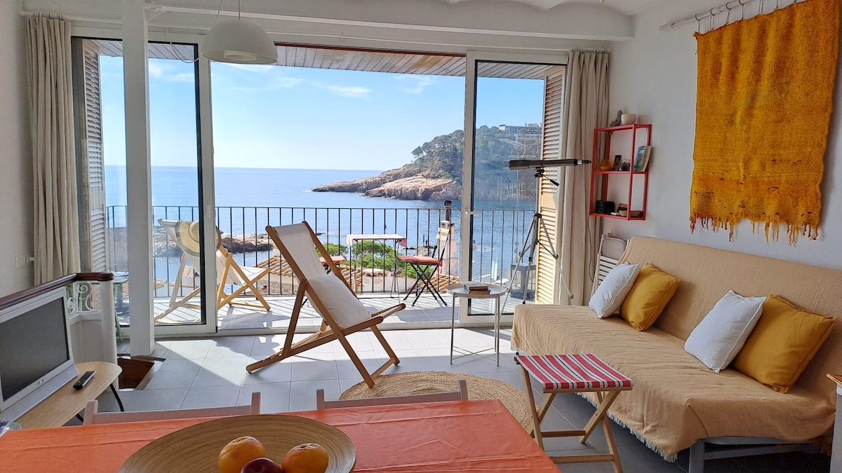 Appartement en première ligne. Petit déjeuner, mange et dîner avec vue sur mer, dans un appartement tout équipé. Détendez-vous en regardant la lune ou une nuit étoilée, dormez et reposez-vous avec le bruit des vagues, réveillez-vous avec un lever de soleil à l'horizon. Situé dans un quartier calme, à 10 minutes à pied du centre de Platja d'Aro, où vous trouverez toutes sortes de restaurants, boutiques, loisirs. À quelques kilomètres de Palamós, Gérone, Calella, Tossa de Mar, Sant Feliu, S'Agaró, Begur...