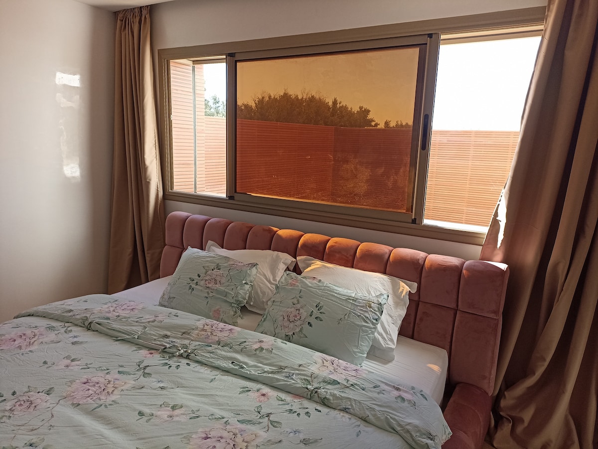 Modern private home with stunning lake views, perfect for families, located next to the 5-star Widian Hotel. This fully equipped house features a large Moroccan living room with 5 sofas, 2 bedrooms (one with twin beds, one with 2 single beds), a compact full bathroom with hot water, air conditioning, a 50-inch Smart TV, and WiFi. Enjoy a spacious terrace, a private garage, and a fully equipped kitchen. Contact us for more details!