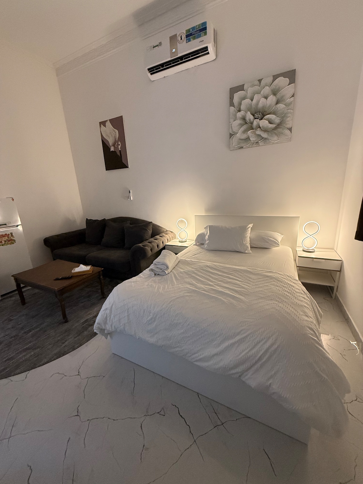 Rendons votre séjour confortable! Le meilleur endroit pour les voyageurs et les hommes d'affaires, des séjours courte durée aux séjours longue durée. Situé au cœur d'Al Ain, près du centre commercial Al Ain et très proche de Baqala avec les commodités suivantes : - Grand studio avec un tout nouveau lit et matelas taille King - Wi-Fi gratuit - Réfrigérateur - Cuisine - Entièrement climatisé - Douche chaude et froide et articles de toilette - Parking gratuit - Entrée indépendante