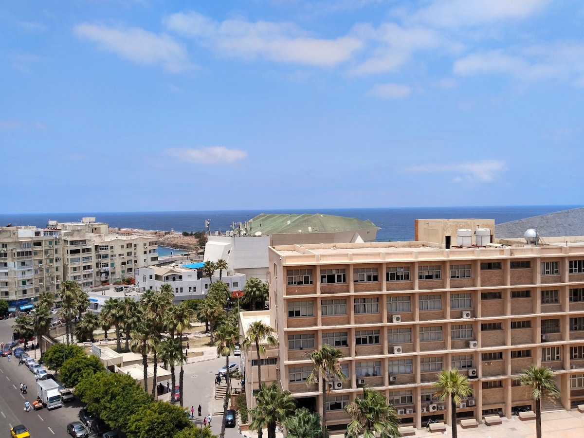 Profitez d'une expérience élégante dans ce logement central. C'est une rue commerciale et animée (un peu bruyante en journée [13 h à 1 h]),,,, dans le centre-ville (mahtet Al Ramel) ne convient pas aux dormeurs sensibles. 6e étage avec 2 ascenseurs et sécurité 24 h/24, 7 j/7. Très central de partout dans les magasins d'Alexandrie, les restaurants, la mer et tous les lieux d'attraction. * Couple égyptien marié, couple étranger et voyageur seul autorisés * Chaque voyageur doit fournir une copie de son passeport dans le cadre du processus de location gouvernemental.