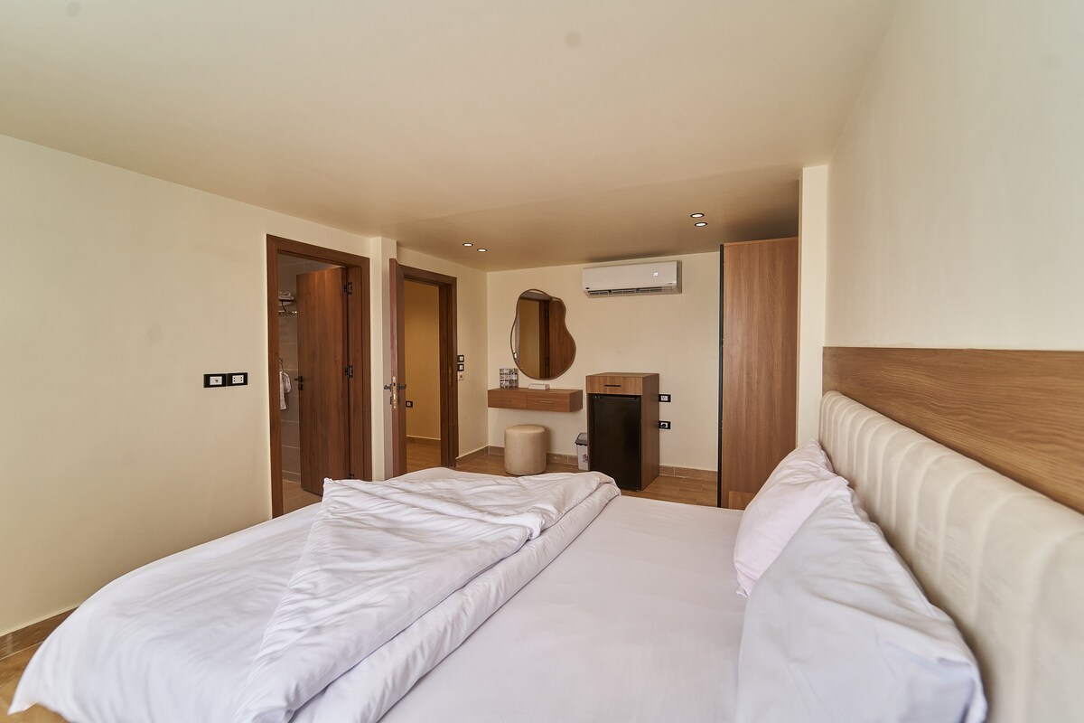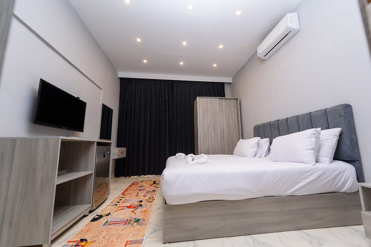 À seulement 3 km des Grandes Pyramides et du Grand Musée égyptien, notre retraite-boutique allie des vues intemporelles avec un service personnalisé. Profitez de couchers de soleil à couper le souffle depuis la terrasse sur le toit surplombant les pyramides, et détendez-vous dans un environnement élégant et tranquille. Avec une hospitalité chaleureuse et attentive à chaque tournant, notre hôtel offre une escapade sereine où le confort, la culture et les soins se réunissent pour créer un séjour vraiment inoubliable.