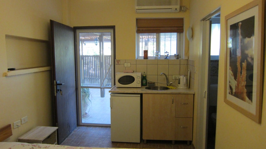 At the lowest place on earth, and in the midst of a breathtaking botanical garden, you will find an amazing one-room private apartment, with a beautiful view to the Dead Sea landscape. The apartment is located in Kibbutz Ein Gedi, with close proximity to the Dead Sea and Spa, and to historic locations such as Masada and Ein Gedi Nature Reserve. In the apartment you will find a well equipped kitchen, dining table, sofa that can turn into a bed + a double bed, and a restroom with a shower.