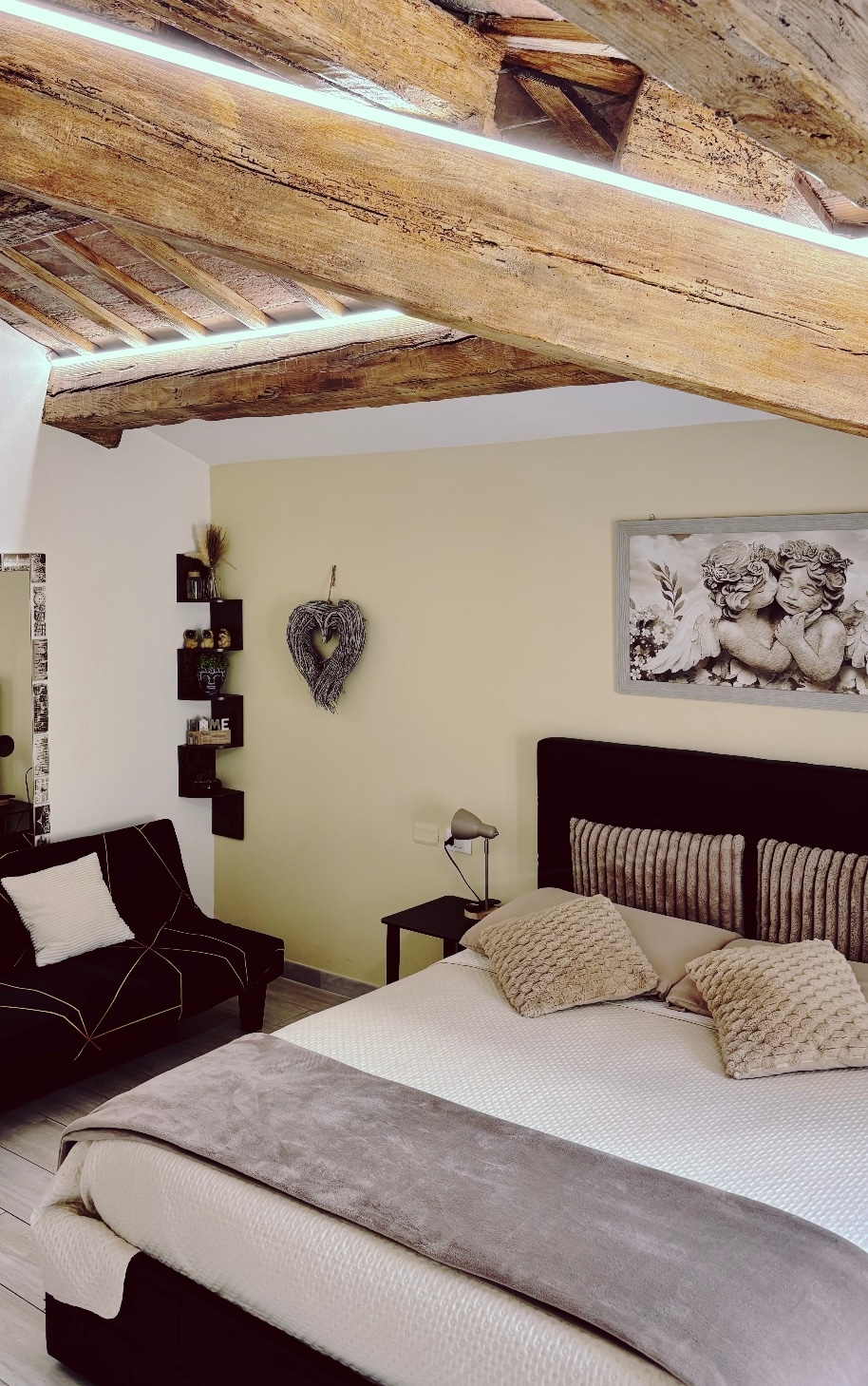 Piccolo monolocale indipendente con bagno, appena ristrutturato, al piano terra con accesso indipendente e cortile interno ad uso esclusivo. Provvisto di divano-letto matrimoniale, angolo cottura, frigorifero, TV, WiFi e aria condizionata. Situato in centro storico, vicino al parco della Rocca Sforzesca. A disposizione biciclette per agevolare gli spostamenti. Accesso principale sottoposto a videosorveglianza per ragioni di sicurezza.