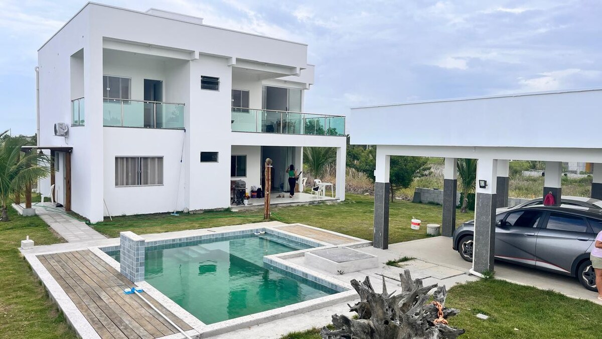 La MAISON DE LA LUNE est confortable, lumineuse, aérée et accueille jusqu'à 8 personnes. Il dispose d'une piscine privée, de 3 suites climatisées, d'une Smart TV 32", d'une cuisine équipée, d'un barbecue, d'un bar et d'un parking. À 870 mètres de la plage, c'est l'espace idéal pour se détendre en pleine nature et profiter des eaux chaudes de Bahia ! Nous ne fournissons pas le linge de lit/ salle de bain ni les lits d'appoint ! Posez-nous des questions sur les frais de retenue pour les rendre disponibles. Pour le Réveillon/Carnaval, les séjours minimum sont de 5 jours.