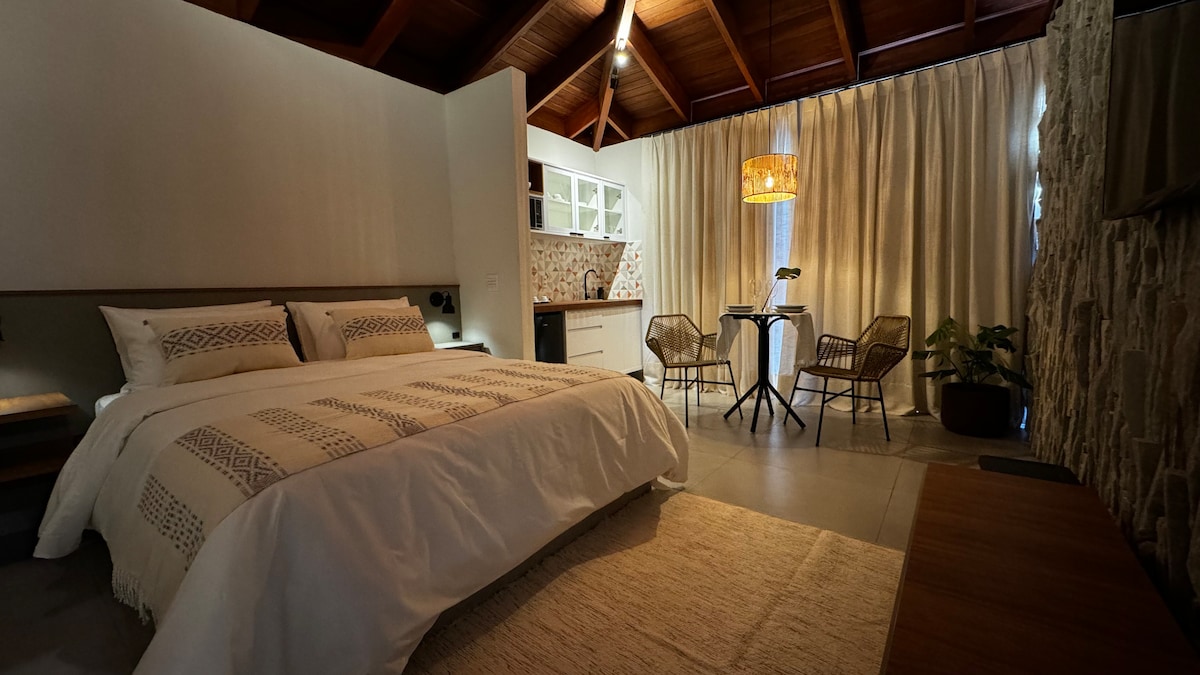 Endroit incroyable et nouvellement ouvert! Chalet Mezanela: Situé à Casario dos Pireneus, au pied de la charmante Morro do Frota, dans le meilleur quartier de la ville, à seulement 6 minutes du centre historique. Le chalet combine un haut niveau de qualité avec le style Pirenópolis, offrant un lit queen size, une literie de qualité supérieure, une cuisine bien équipée, une télévision de 60 pouces, la climatisation et Internet. Profitez de Pirenópolis avec le confort et l'exclusivité que vous méritez. Vivez une expérience inoubliable !