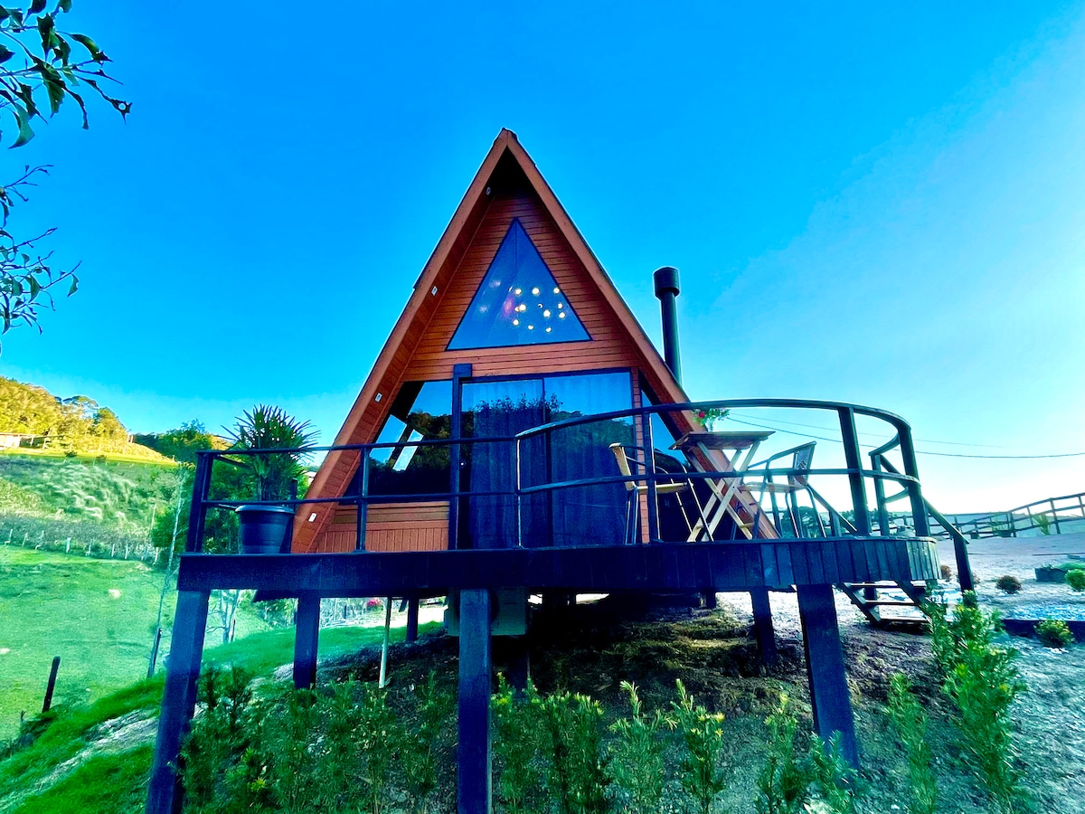 Cabane moderne et exclusive, avec baignoire et cheminée