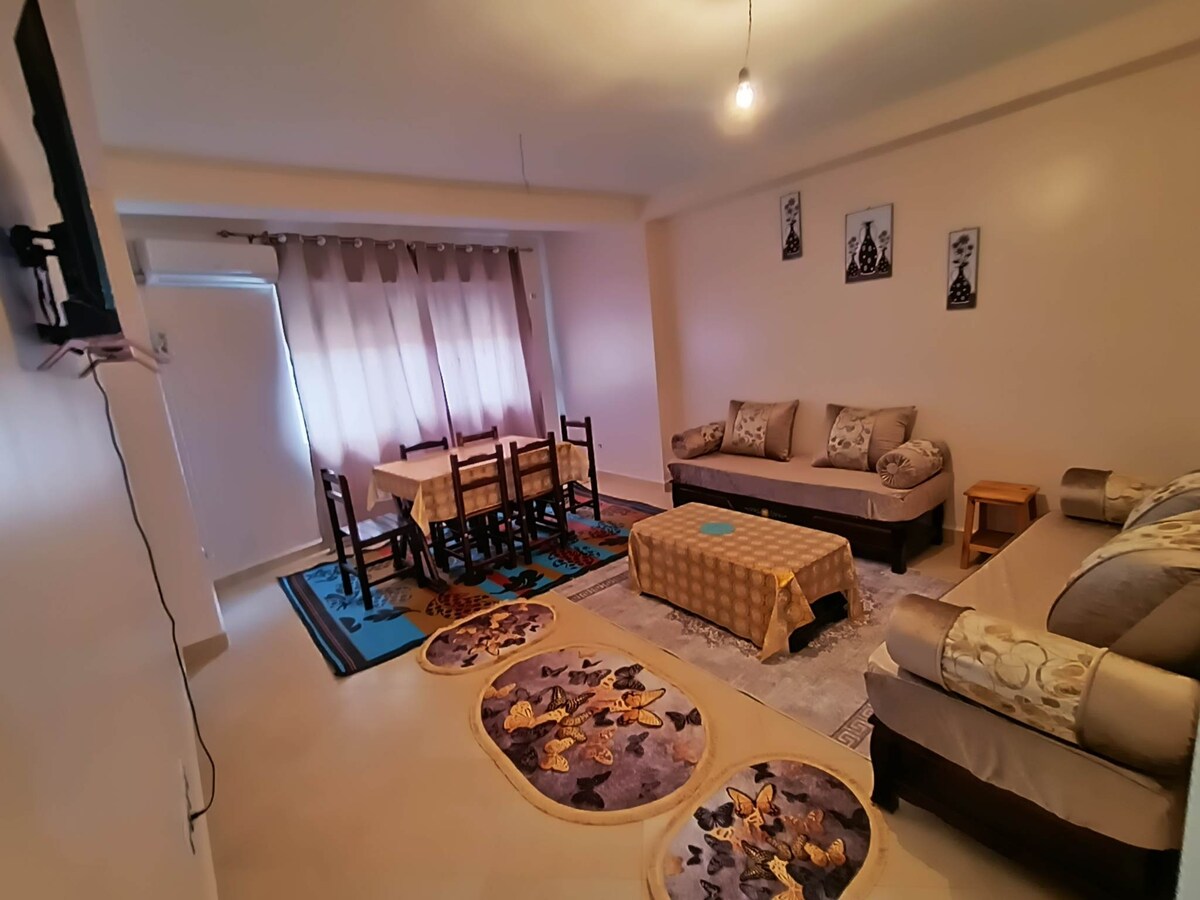logement neuf sur la côte Ouest de Bejaia. juste après Adrar Oufarnou. à 10km des plages de boulimat/Saket et 7km de Béjaïa centre ville. Commerces à proximité, lavage, mosquée, restaurants. Au bord RN24 Résidence sécurisée avec gardien permanent. - 5e avec Ascenseurs - 2 place parking privé - 2 chambres + séjour - 6 personnes - 6 Lits - draps/serviettes -cuisine équipée - cuisinière - TV HD WiFi Netflix YouTube - machine à laver - frigo - micro-onde - clim - Table ... 10€ frais ménage