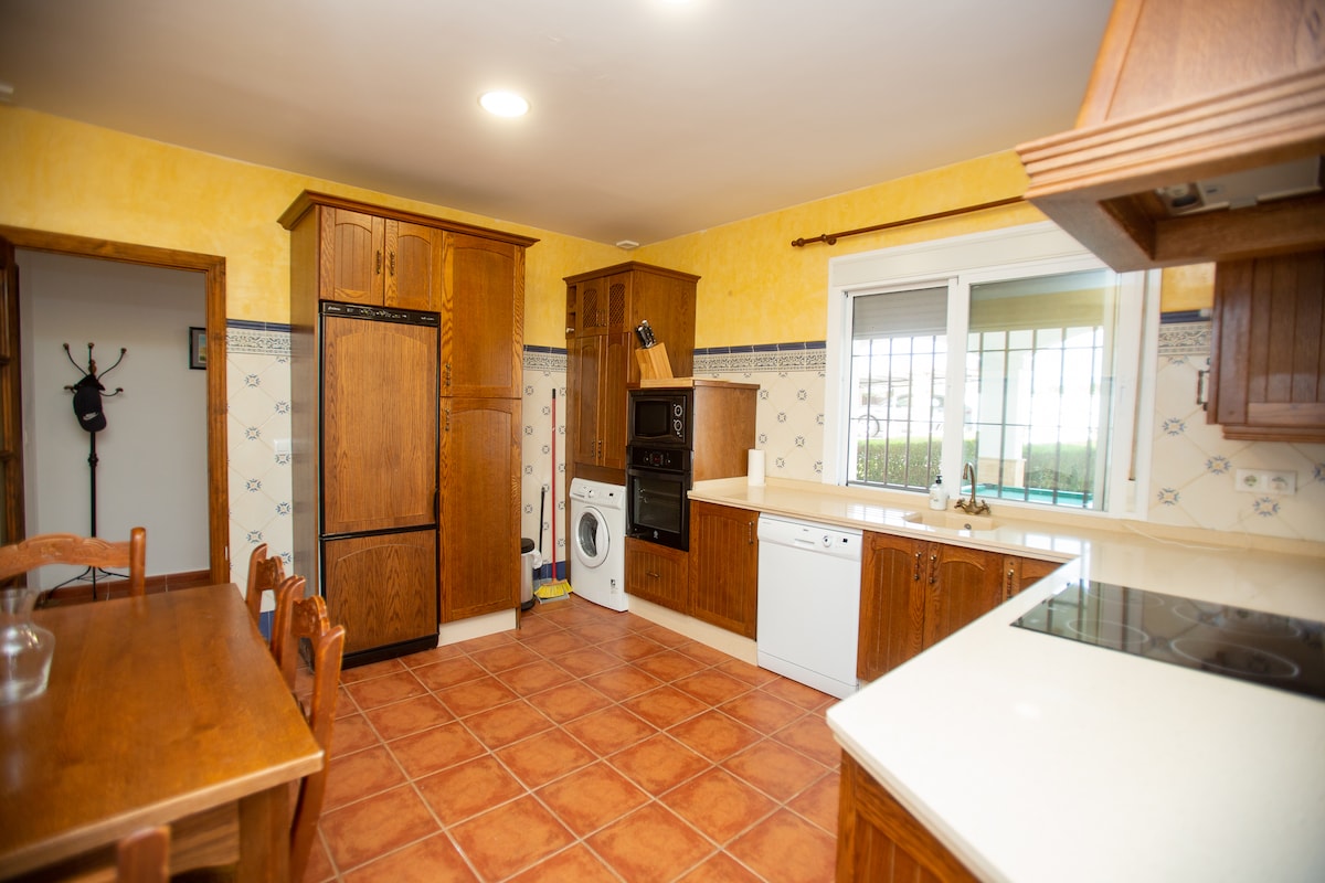 Villa de luxe indépendante avec label de qualité « Excellence touristique andalouse » pour 13 personnes, avec piscine privée, espace barbecue, grands jardins, parking à l'intérieur de la maison, table de billard, idéale pour les familles avec enfants, à 5 minutes en voiture de la plage, à 5 minutes du centre pour les tapas, et à 15 minutes du terrain de golf. Les animaux de compagnie sont acceptés. Numéro d'enregistrement de location associé à l'ESFCTU0000110100002432040000000000000000VFT/CA/106140.