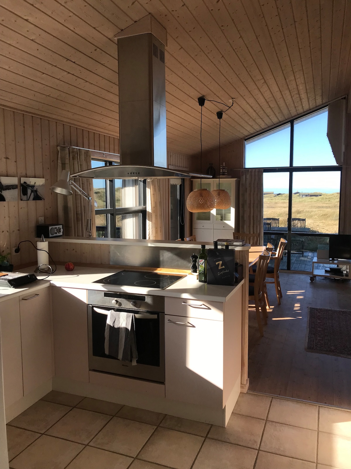 Charmant chalet rétro avec vue imprenable sur la mer. Profitez du coucher de soleil sur les dunes depuis la cuisine ouverte. Les grandes fenêtres offrent de la lumière et de la visibilité. Ou détendez-vous par une froide journée d'hiver devant le poêle à bois et admirez la mer du Nord rugissante. Salon avec alcôves de couchage confortables, y compris vue sur l'océan. 2 chambres, salle de bain et loft avec espace pour 2 personnes supplémentaires. Remarque : le prix ne comprend pas le nettoyage : 700 DKK pour les séjours de plus de 3 jours, sinon 500 DKK pour les séjours de moins de 3 jours. Payé au départ.
