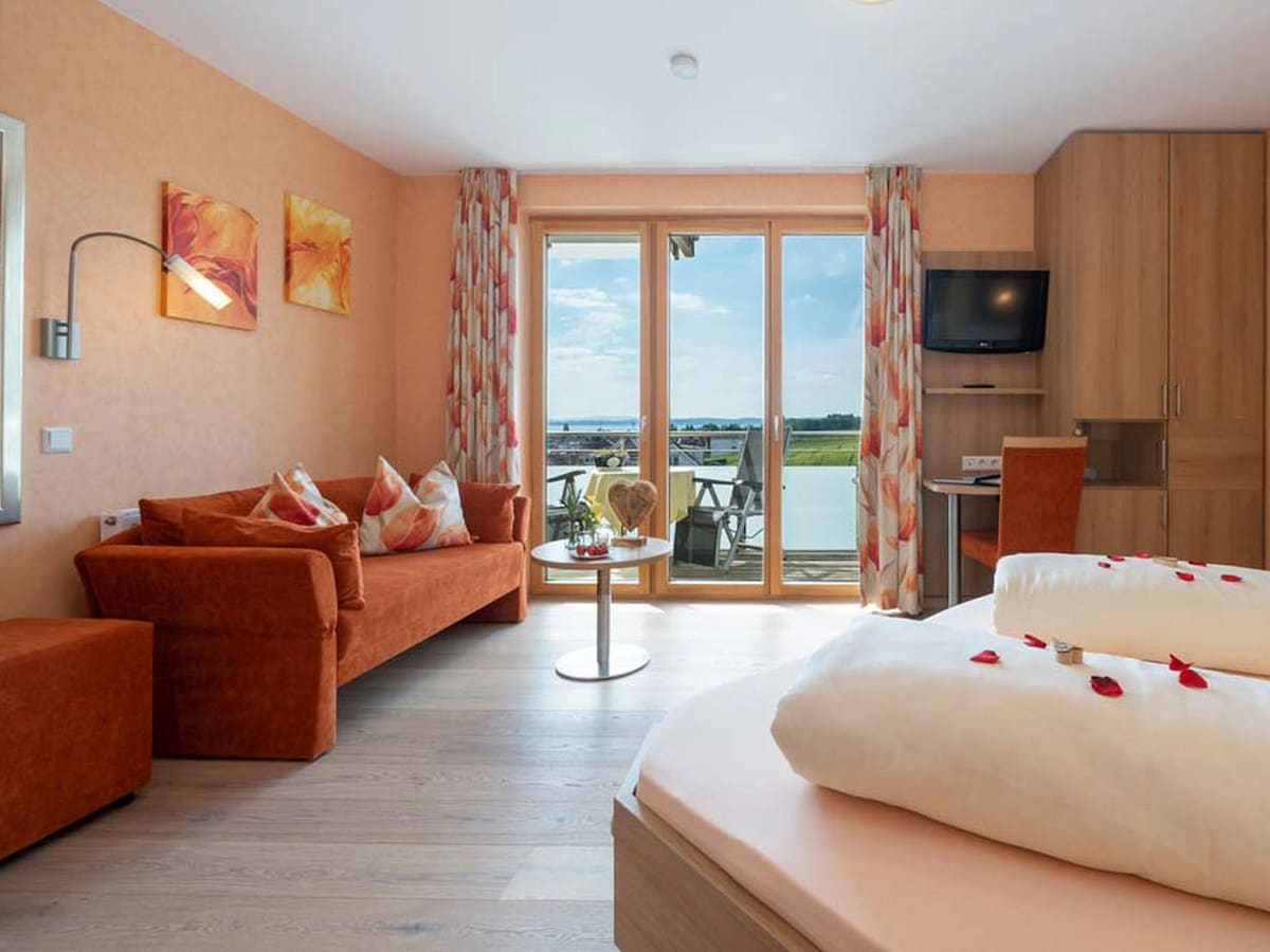 Appartement confortable d'une pièce, lit double, salle à manger, salle de bain avec douche et WC et linge éponge complet (serviettes de bain et serviettes de bain, tapis), climatisation et balcon, télévision par satellite, wifi, kitchenette avec lave-vaisselle, réfrigérateur, congélateur, plaque de cuisson à 2 plaques, micro-ondes, machine à café Nespresso, bouilloire ainsi que vaisselle et vaisselle complète pour max. Nombre de personnes de l'appartement. Nettoyage final au départ inclus.