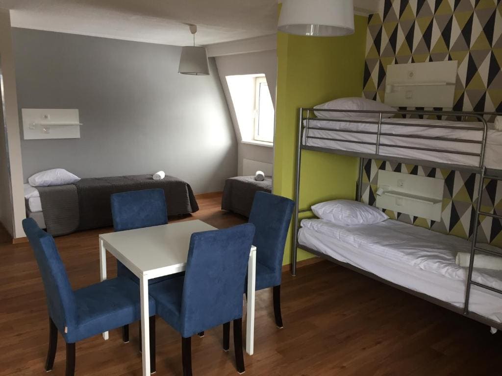 Chambre à deux lits dans une auberge de jeunesse du centre-ville.