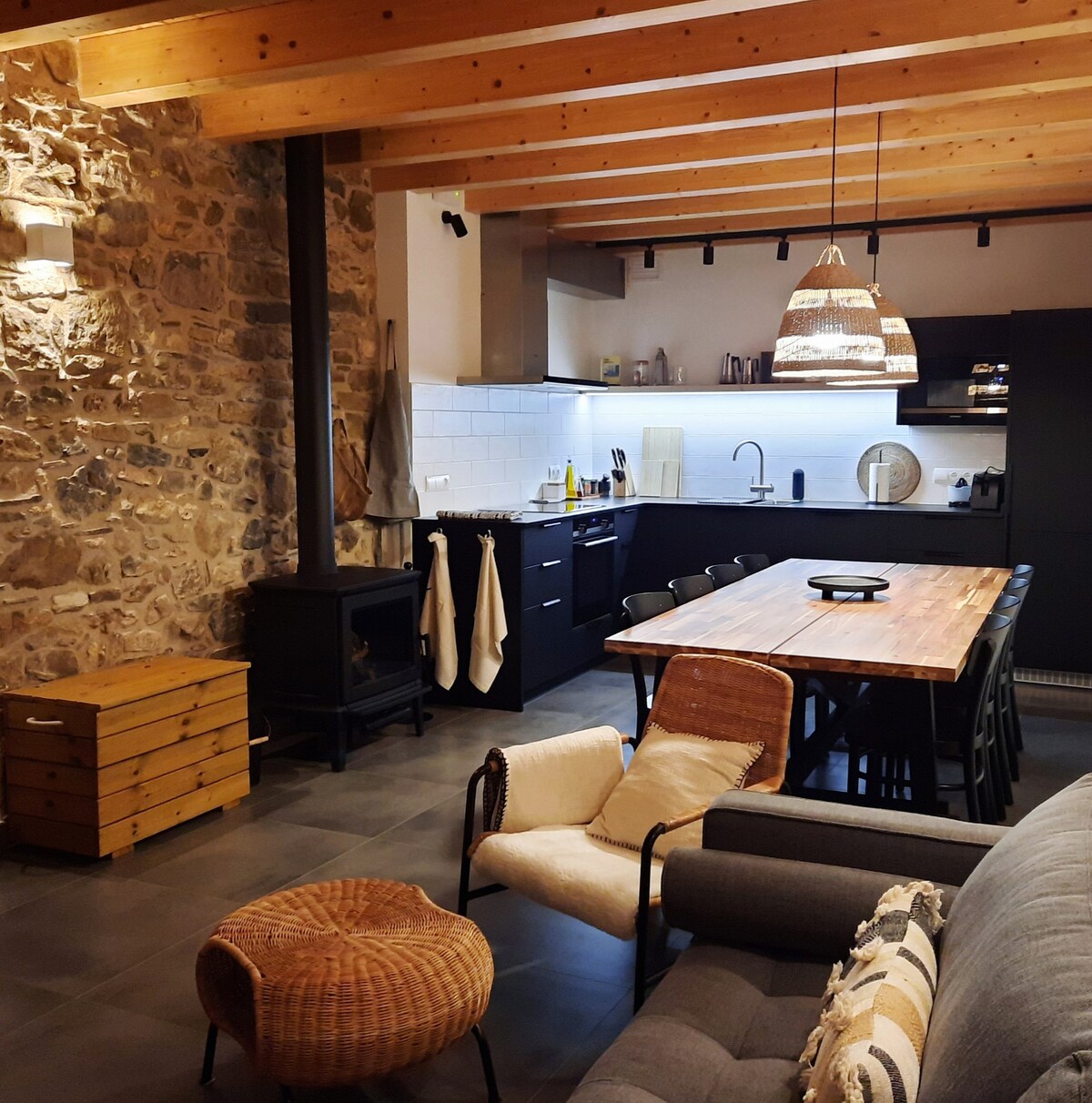 Cal Cassi est une maison de montagne restaurée avec soin dans les moindres détails de sa conception et de sa décoration pour offrir aux clients un séjour unique dans la vallée de la Cerdagne. Située dans la ville de Ger, avec des vues panoramiques exceptionnelles, elle domine toute la vallée avec vue sur les stations de ski, la rivière Segre et le massif du Cadí. Vous vous sentirez comme dans un refuge de montagne et vous pourrez vous déconnecter ! Maison durable : NOUS PRODUISONS NOTRE ÉNERGIE.