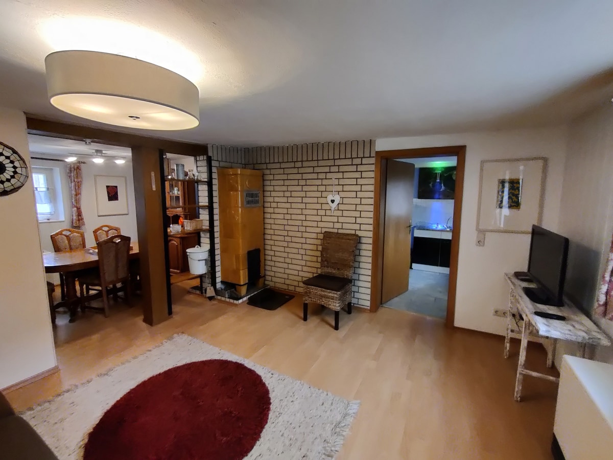 Dans notre ferme, tu trouveras tout ce qu'il faut pour passer des journées tranquilles à la campagne. Il y a un magasin de village bio avec café, un sauna tonneau et la nature juste devant la porte. Quatre fois par semaine, des cours de yoga ont lieu - idéal pour renforcer le corps et l'esprit. Un parking et une station de recharge électrique sont disponibles. Nous sommes une ferme de 4 générations avec des projets durables, dont un jardin de permaculture en devenir devant l'appartement. L'appartement est idéal pour les couples, nous mettons volontiers à disposition un lit bébé.
