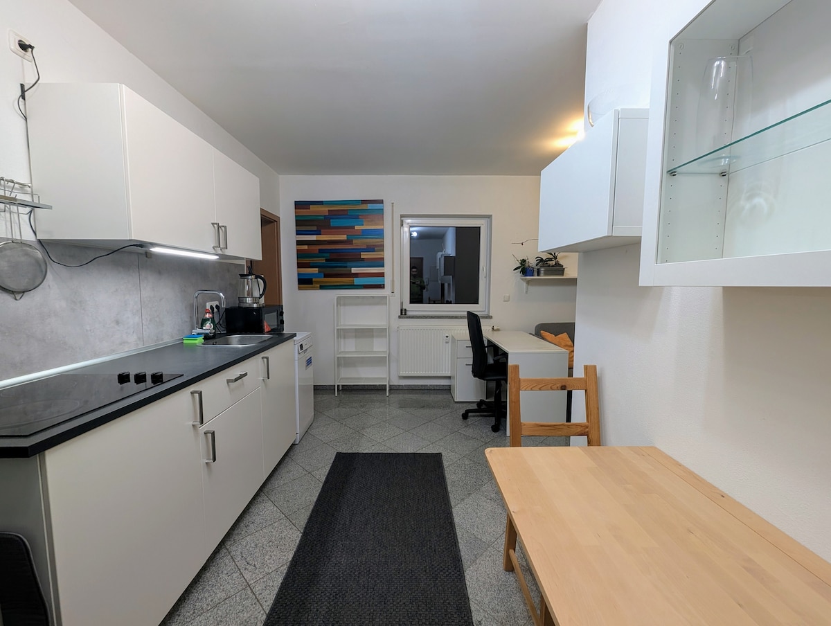 Cet appartement de deux pièces récemment rénové se trouve à proximité de la sortie d'autoroute Weiden Süd. Après l'entrée, on accède directement à l'appartement avec une cuisine bien équipée. Dans le salon, il y a un canapé-lit. Une table à manger avec trois chaises est également disponible. Dans la chambre, en plus du lit de 1,80x2,0m, il y a une armoire + un porte-vêtements. Dans la salle de bain, il y a une douche et une baignoire. Le parking invité se trouve sur la propriété.