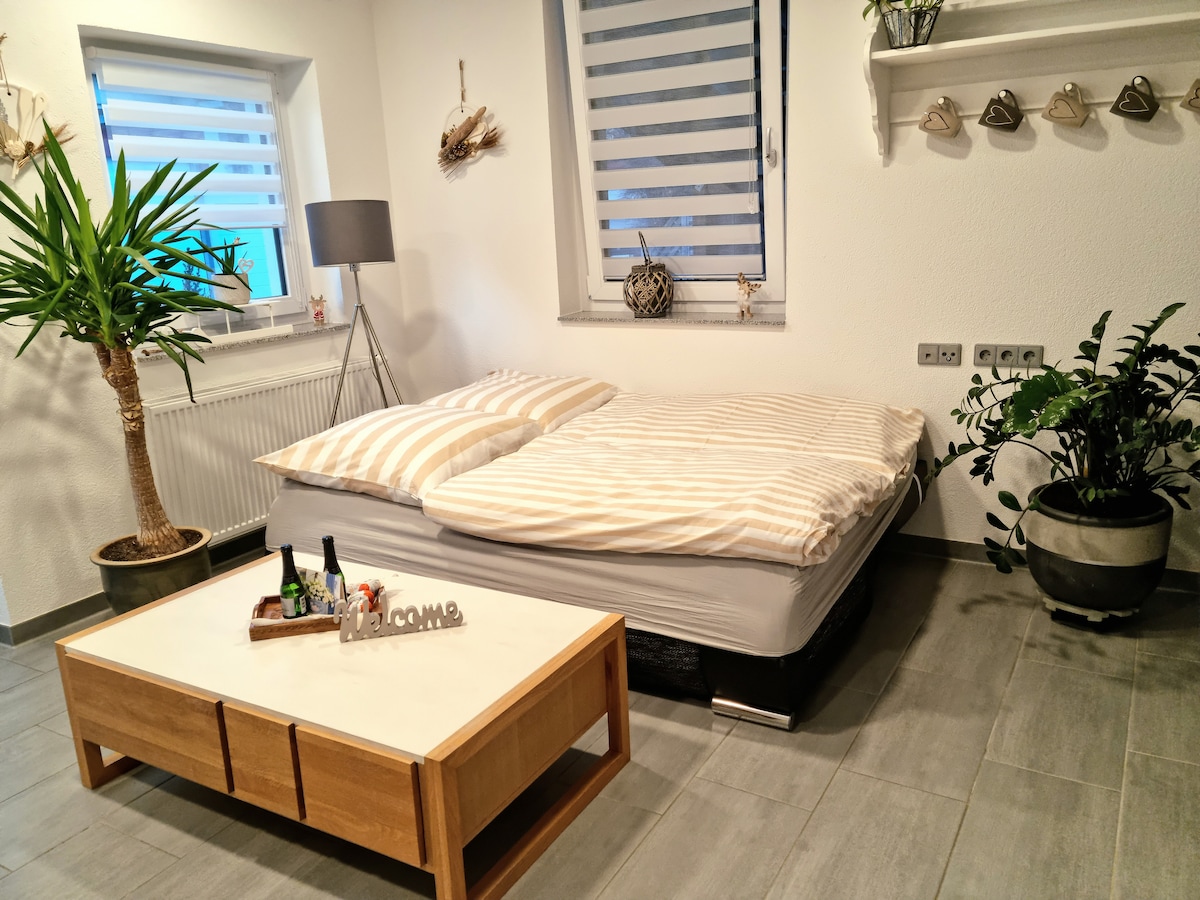 Wohnung im Erdgeschoß mit separatem Eingang und eigener Terrasse. Unsere Einrichtung ist in modern und Landhausstil gehalten.Sie verfügen über eine komplett eingerichtete Küche mit Kochinsel, einem großen Bad mit begehbarer Dusche. In der Wohnung befindet sich ein grosses Schlafzimmer mit einem Doppelbett in der Größe 180/200, zusätzlich befindet sich im Bereich des Wohnzimmers, eine ausziehbare Couch mit den Maßen 140/200.Alle unsere Betten sind mit Toppern ausgestattet. Handtücher vor Ort.