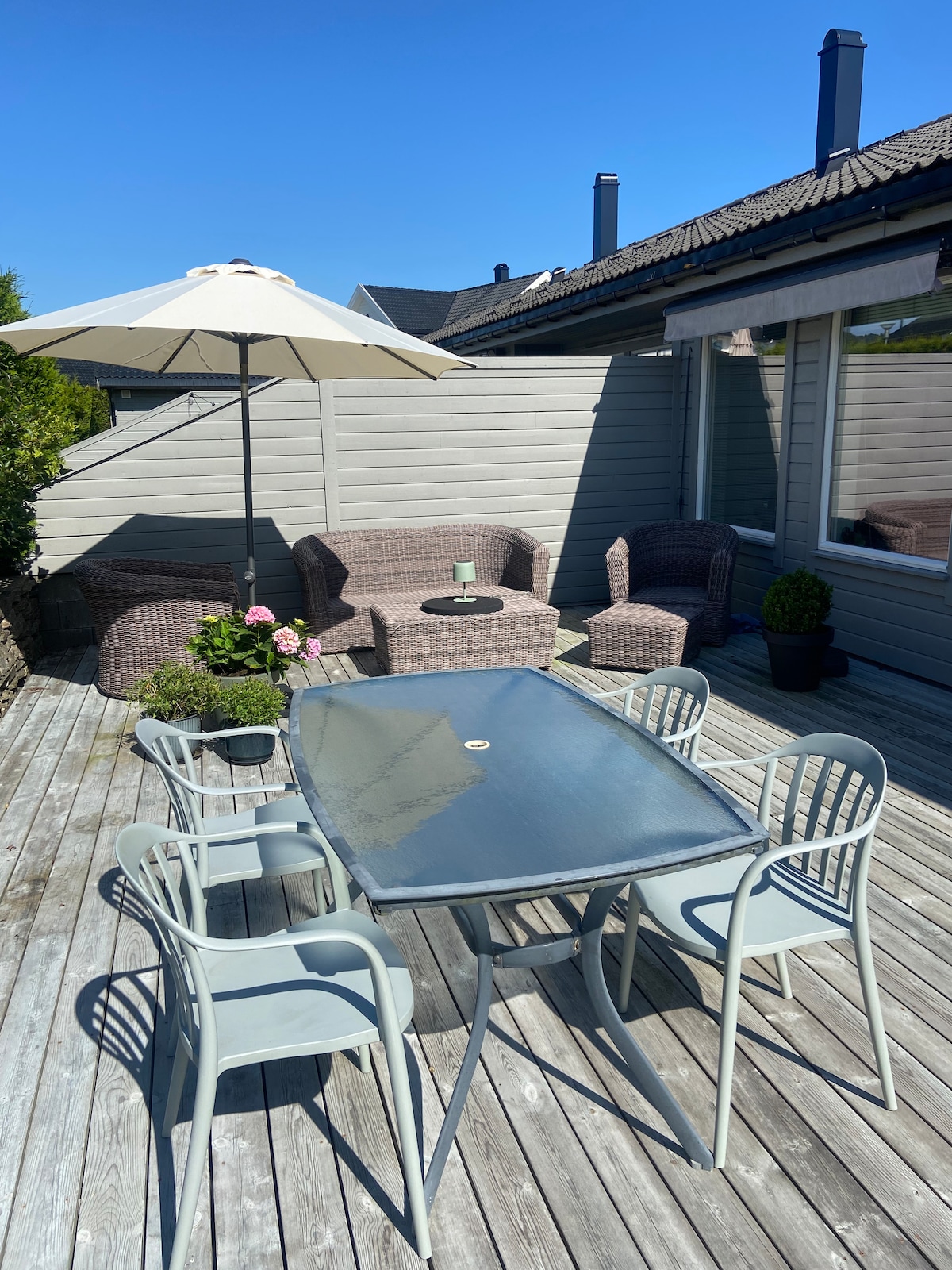 Lad batteriene på dette unike og rolige overnattingsstedet. Nyt sjø utsikten enten ved kjøkkenbordet, stuebordet, i utestue eller på en av hagens flotte uteområder. Tenn i peisen som er gjennomgående fra kjøkken til stue, eller ta deg et deilig bad i det gammeldagse badekaret med løveføtter. Huset ligger i et fredelig strøk, samtidig som det er sentralt. Kun 30 min. å kjøre til Bergen, og 10 min. kjøring til Knarvik senter. Gåavstand til nærmeste Kiwi butikk.