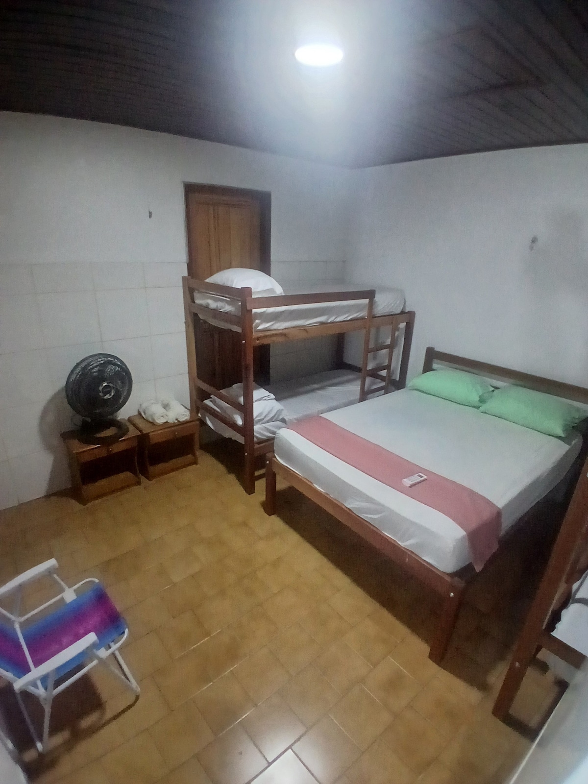 Au pied de la Serra do Carauari et à 200 mètres des plages du lac Verde, le chalet est embrassé par une diversité de faune et de flore. Les primates, les cutias, les oiseaux et nos deux chats peuvent être accompagnés par le balcon au deuxième étage du chalet. Pour plus de confort, la suite dispose de la climatisation. La cuisine ouverte offre une grande table de piquiá et un plafond vert où vous vous occupez d'un jardin. Un lieu de romantisme et de tranquillité, béni par l'ombre d'un ipê jaune de 30 mètres.