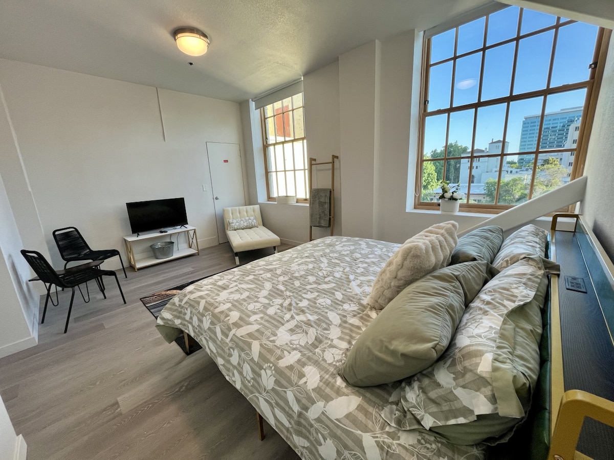 Votre maison loin de chez vous au cœur de Midtown Sacramento ! Ouvert, chaleureux et accueillant, le Sac City Loft dispose de tous les équipements nécessaires pour passer un séjour confortable. Ce studio spacieux est un espace rénové dans un quadruplex victorien historique. Découvrez le meilleur de Midtown, à quelques pas seulement. ***REMARQUE SUR L'ACCESSIBILITÉ*** Deux escaliers mènent au loft, l'un est raide et étroit.