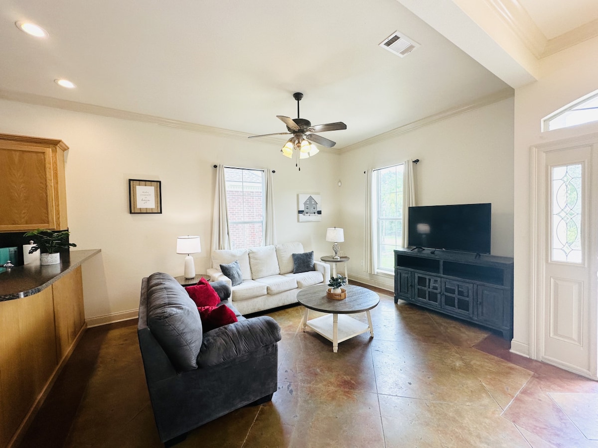 Cette maison magnifiquement rénovée se trouve sur 5,5 acres avec un étang d'un acre. Idéalement situé à proximité de l'I-55 et de l'I-12 et à environ 5 minutes de la S.L.U. et du centre-ville de Hammond. Harper's Haven est à environ 30 minutes de Baton Rouge et à environ 45 minutes du centre-ville de La Nouvelle-Orléans. Capacité d'accueil de 6 personnes, avec un lit King Size et 2 lits Queen Size. La cuisine est entièrement équipée et comprend un Keurig. Il y a également une buanderie avec un lave-linge/sèche-linge et un évier utilitaire. Profitez des grillades ou détendez-vous sur le patio, ou pêchez et faites du kayak dans l'étang.