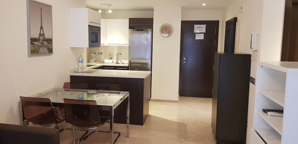 Endroit calme, confortable, sûr, bien entretenu et pittoresque entouré de montagnes avec une vue imprenable sur l'océan au coucher du soleil depuis toutes les chambres et la terrasse. Maison confortable pour les vacances et le travail à distance (moniteur, Internet FastViberFTTXOptic 600 Mbps). Entrée privée séparée, 1 terrasse, 1 balcon, 2 chambres, 2 salles de bains, 2 piscines, CLIMATISATION. Lave-vaisselle, lave-linge, sèche-linge, micro-ondes, four, télévision connectée, bouilloire, machine à café Nespresso, chauffage, filtre à eau. Garage. Beaucoup de places de stationnement gratuites dans le complexe.