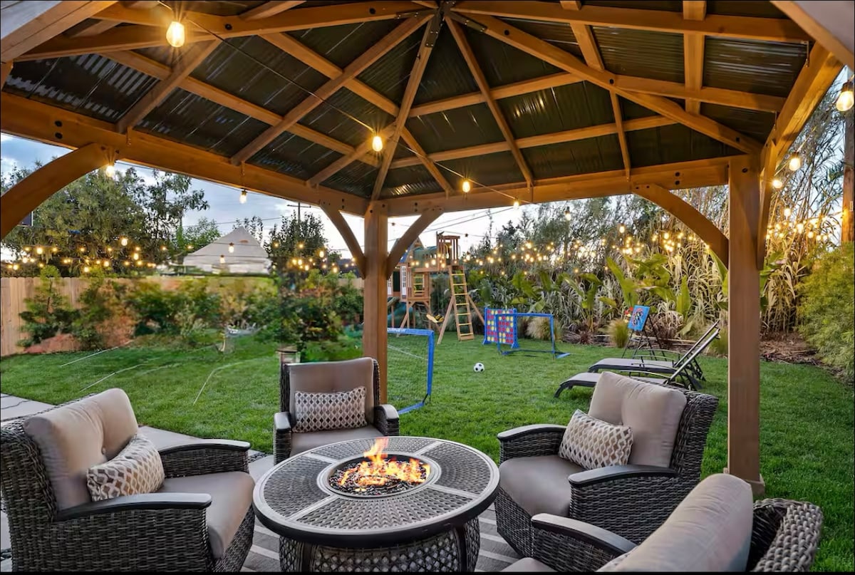 Profitez d'un logement élégant et central, hébergé par That Yellow door ! Cette maison spacieuse à concept ouvert est située dans la ville ensoleillée de Fullerton, en Californie, à 15 minutes en voiture de Disneyland. Design professionnel et touches de décoration dans chaque pièce. Préparez des repas ensemble dans notre grande cuisine entièrement équipée qui donne directement sur la salle à manger et le séjour ou profitez de la cour arrière spacieuse. Jeux extérieurs et intérieurs en famille et entre amis !