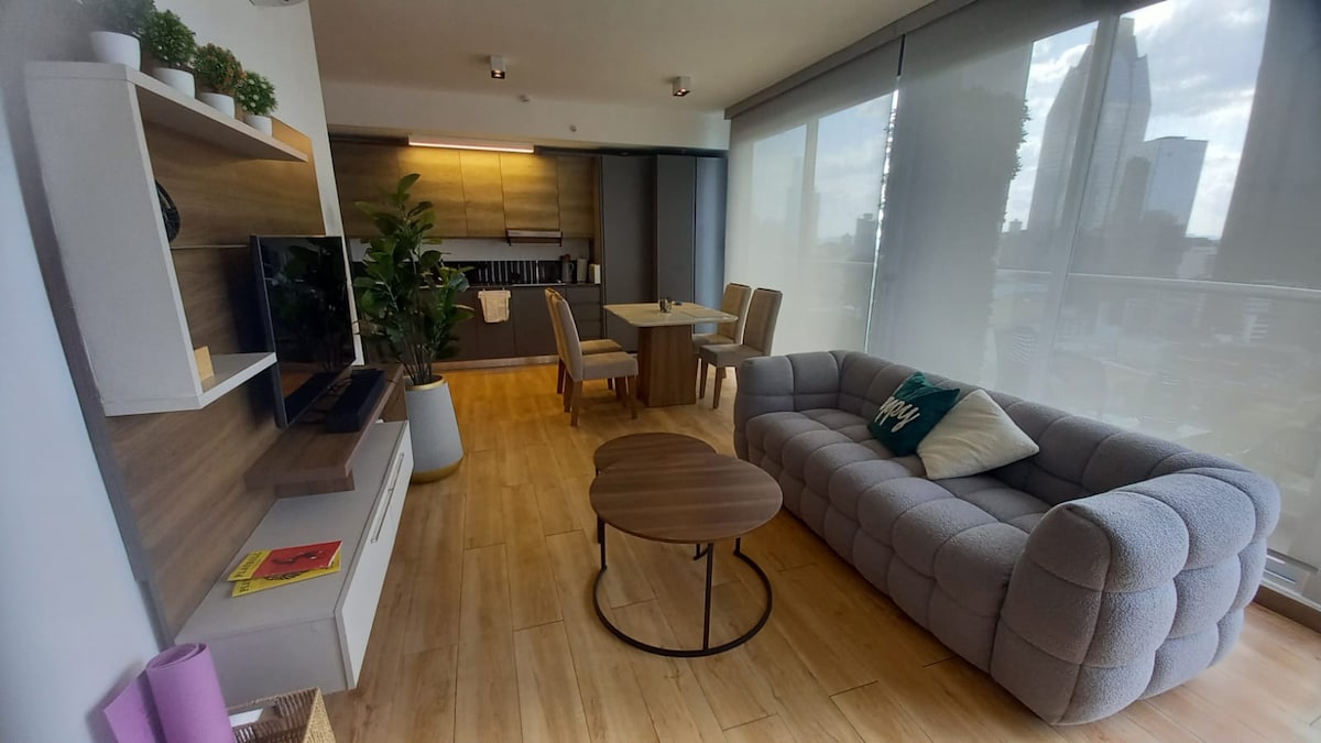 La meilleure option d'hébergement, située dans le centre de la ville animée de Panama. C'est un appartement spacieux, cosy, tout équipé, avec un accès rapide à Internet, télévision par câble et services de streaming populaires. À proximité d'excellentes options gastronomiques, des cafés, de la vie nocturne, des parcs urbains, des centres commerciaux haut de gamme et des transports urbains qui vous emmèneront dans tous les sites touristiques populaires que la ville de Panama a à offrir. C'est une maison à l'écart de la maison.