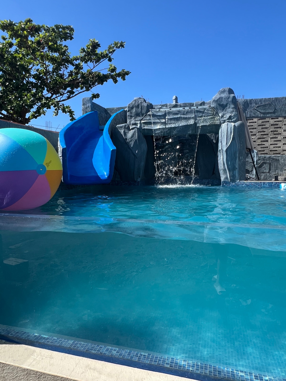 La station balnéaire privée est située à Wenceslao, Caba, La Union. C'est dans la zone de la ferme de raisins à LU et à 40 minutes de San Juan. L'endroit est à quelques pas de la plage. L'ensemble de la villa est réservée à l'usage exclusif des voyageurs. Il dispose de 2 chambres, 3 salles de bain, un salon, une cuisine et un coin repas. Profitez de nos équipements : piscine de 9 x 4 mètres avec zone pour enfants, belvédère avec cuisine et vidéo, terrasse sur le toit avec vue panoramique, wifi rapide, télévision connectée avec Netflix, cueillette de mûriers et poisson et payez à l'étang.