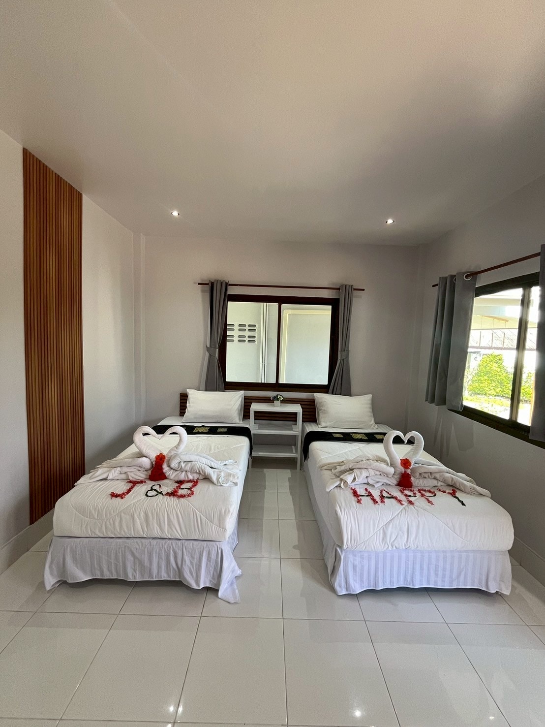 La maison spacieuse et entièrement meublée qui est si proche de la plage de Kata (1,2 km/14 min à pied) a un excellent environnement et une cour spacieuse. Chaque maison est équipée d'une chambre avec climatiseur et lits doubles, d'une cuisine avec plaque chauffante électrique et réfrigérateur, d'un salon avec canapé et télévision, d'une salle de bain avec chauffe-eau et d'un balcon spacieux pour que vous puissiez profiter de la soirée et de la vue sur la montagne. Un restaurant thaïlandais, des magasins de fruits et de massage sont à proximité dans la région.