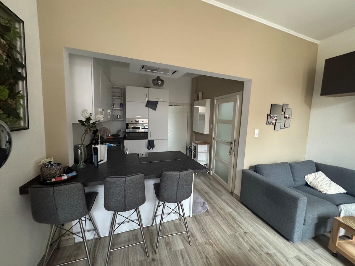 APPARTEMENT TRES LUMINEUX SITUE AU 1ER ETAGE COMPOSE D’UNE CHAMBRE AVEC SALLE DE BAIN SEPAREE. L'APPARTEMENT A ETE ENTIÈREMENT RENOVE EN 2019. LA CUISINE TOTALEMENT ÉQUIPÉE EST OUVERTE SUR LE SALON. Il Y A UNE GRANDE TABLE DE BAR POUR MANGER OU TRAVAILLER. LA CHAMBRE EST ÉQUIPÉE D’UNE TÉLÉVISION À ÉCRAN PLAT ET D’UN LIT 160 CM x 200 CM. VOUS AUREZ ACCÈS À UNE BUANDERIE AVEC MACHINE À LAVER ET SÈCHE LINGE. IL Y A MOYEN DE RANGER VOS VÉLOS. EMPLACEMENT DE PARKING FERMÉ SUR DEMANDE EN SUPPLÉMENT.