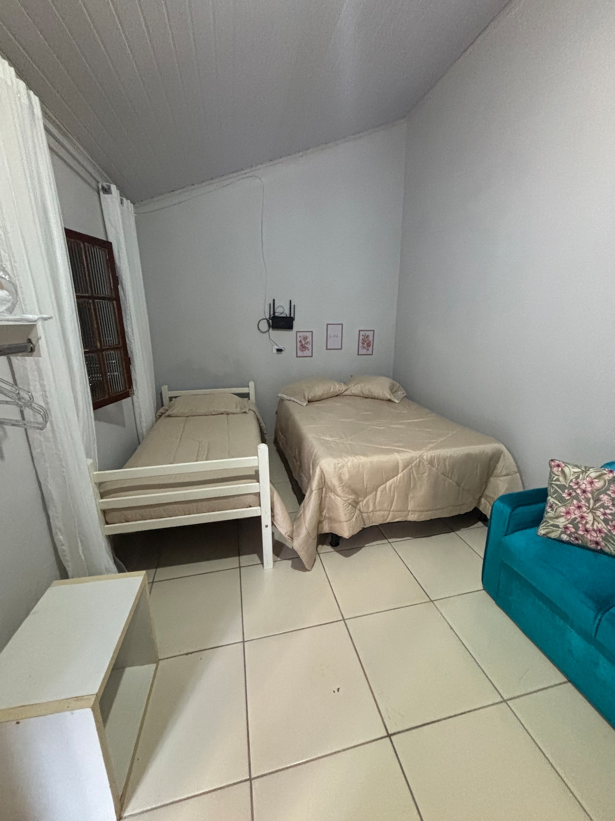 Faça uma pausa paSuíte tripla, ampla e arejada, na frente tem uma varanda com rede. Na suíte possui uma mini cozinha com fogão, geladeira, cafeteira e etc... A suíte também possui uma cama de casal, de solteiro, ar condicionado, ventilador e luz de emergencia. Atrás da suíte também tem um tanque e um varal. fica localizada no final da rua Getulio vargas, chegando na praia do canto. o lugar e bem tranquilo e familiar, TEM ÁGUA QUENTE NO CHUVEIRO. A suíte é independente Só aceitamos pet de pequeno