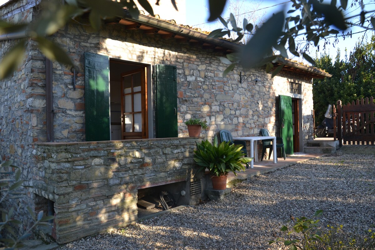 Dans le Chianti florentin, zone Florence Sud, près de la sortie d'autoroute, dans un petit village vallonné au pied de la villa des Médicis de Lappeggi, belle maison de campagne indépendante avec jardin clôturé, privé, décor de qualité. Grand séjour et salle à manger, cuisine équipée, chambre double avec placard, chambre double en mezzanine vitrée, salle de bain vitrée avec douche, jardin équipé à usage exclusif, parking privé. Internet rapide avec fibre.