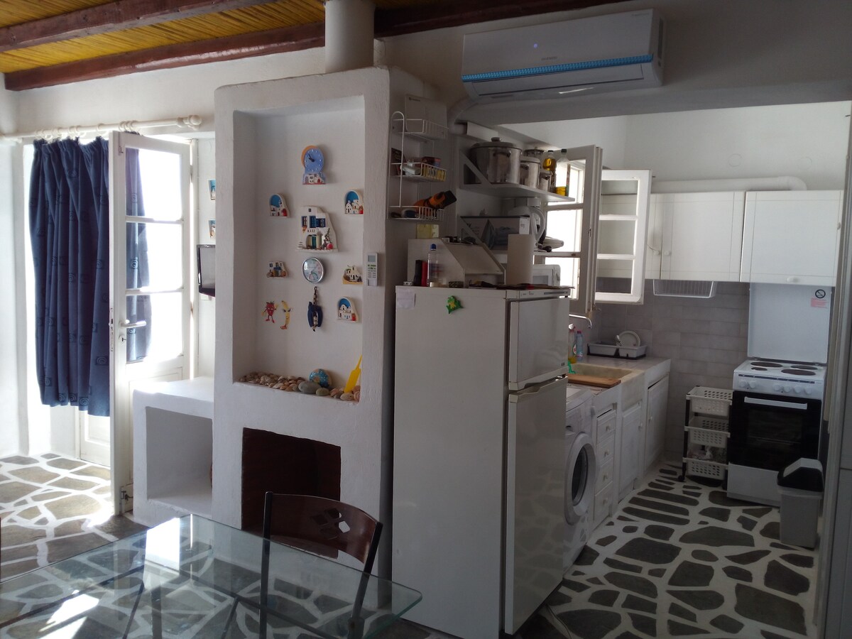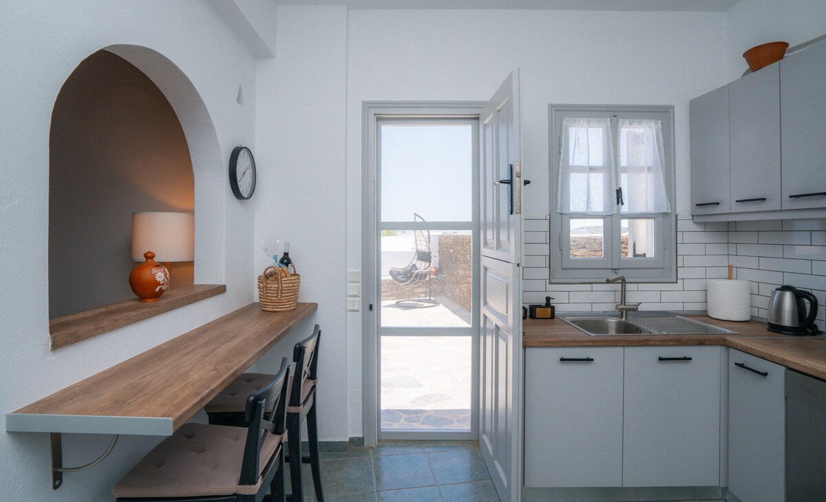 Our apartments are a complex of fully furnished traditional homes, built with love and respect for Cycladic architecture and local traditions. All studios feature private balconies where you can enjoy views of the Aegean Sea and the surrounding villages. Our warm hospitality, along with our homemade treats, will help make your stay truly wonderful.