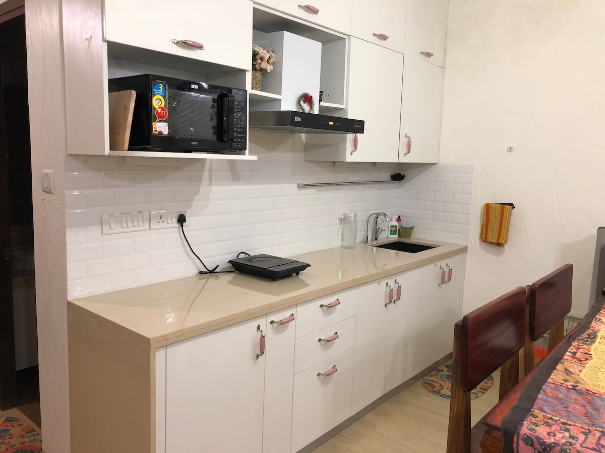 Niché dans la tranquillité, il allie confort et commodité, idéal pour tout voyageur. Il dispose d'un grand canapé personnalisé pour la détente, d'une télévision HD de 43 po, d'un luxueux matelas Ortho WakeFit de 8 po pour un repos suprême et d'un bureau pour les heures de travail. La cuisine est entièrement équipée pour vos besoins culinaires, tandis que le balcon offre une vue paisible sur les champs, parfait pour se détendre. Ce logement est conçu pour rendre votre séjour mémorable, offrant une escapade sereine avec tout le confort d'un chez-soi. Vivez une escapade unique avec nous.