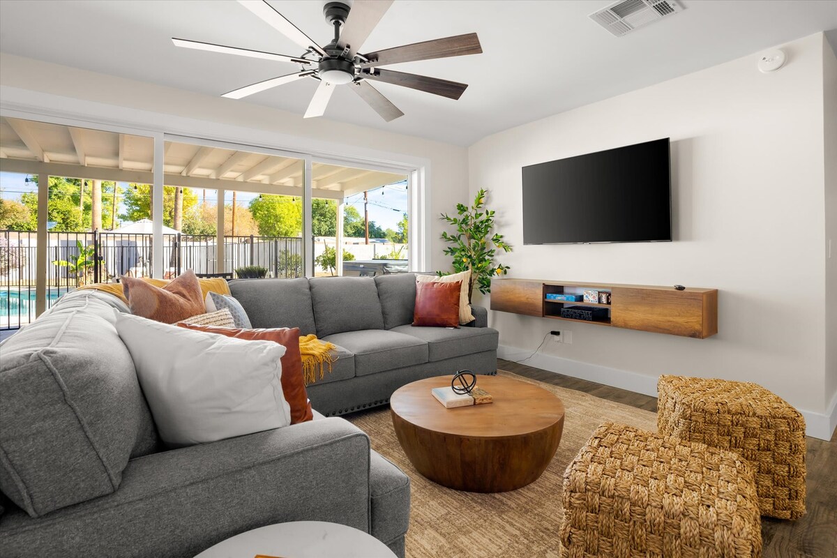 Bienvenue dans votre villa privée, à 8 minutes de la vieille ville de Scottsdale, l'escapade parfaite. Accueille 16 amis et membres de la famille à la piscine chauffée*, au spa et au feu. Cuisinez à l'extérieur dans la cuisine du pavillon, écoutez de la musique avec le son ambiant, jouez aux échecs grandeur nature, dînez, buvez du vin ou détendez-vous sur les chaises longues. Faites glisser la paroi vitrée pour profiter pleinement de l'intérieur et de l'extérieur. 4 chambres, 3,5 salles de bain et un aménagement ouvert avec de hauts plafonds dans un luxe moderne. Conçu professionnellement par Style Me GHD.
