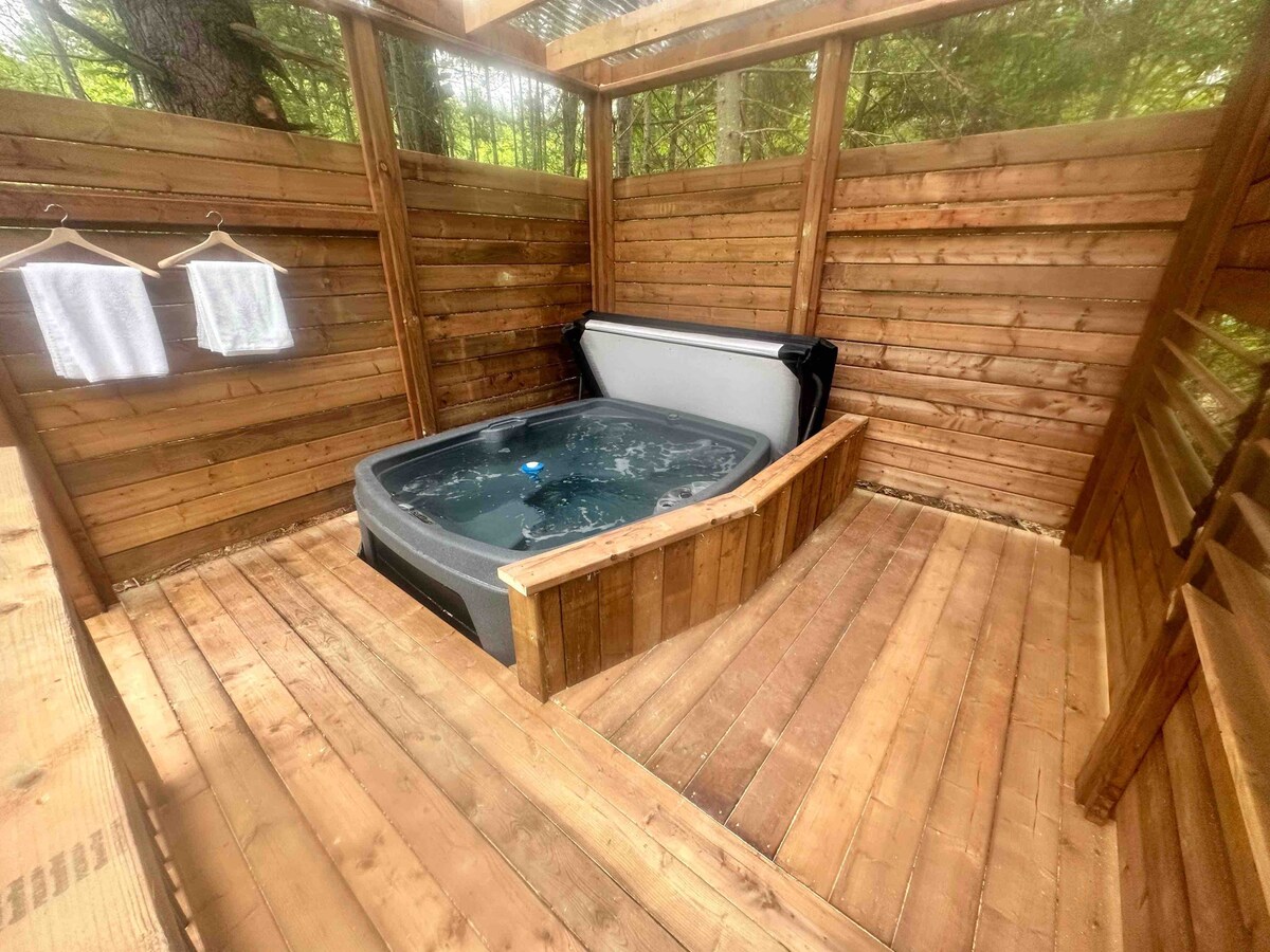 Micro-maison au bord de l'eau avec spa autonome au bois
