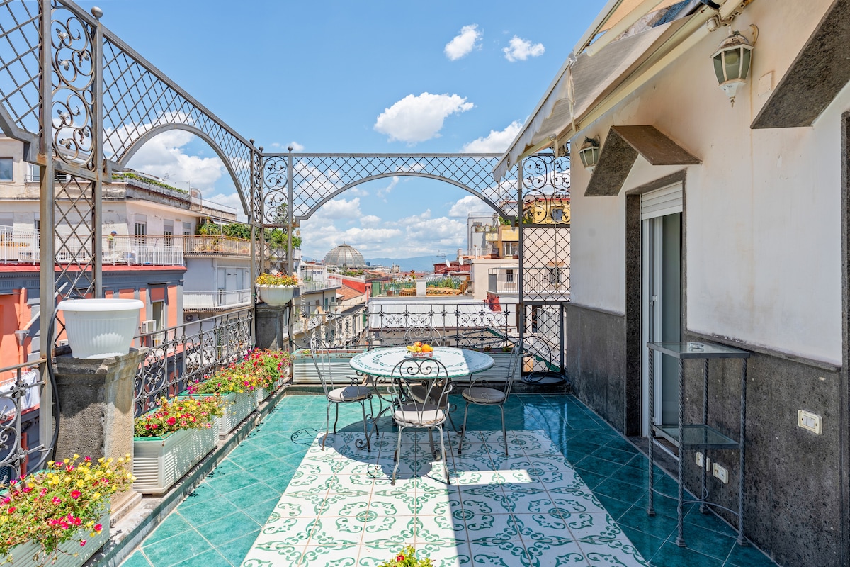 Luxury apartment: a combination of classic elegance and modernity, just renovated with JACUZZI and PRIVATE ROOFTOP of 90mq where you can admire the volcano Vesuvius. Located in a historical building on the 3rd floor without elevator in the heart of the old town, you can reach everything by walking. WiFi, PrimeVideo, Nespresso and luggage storage for FREE Points of interest • 2 min Duomo • 4 min Underground Naples • 6 min Metro L1 & L2 • 5 min Train Station • 10 min Harbour
