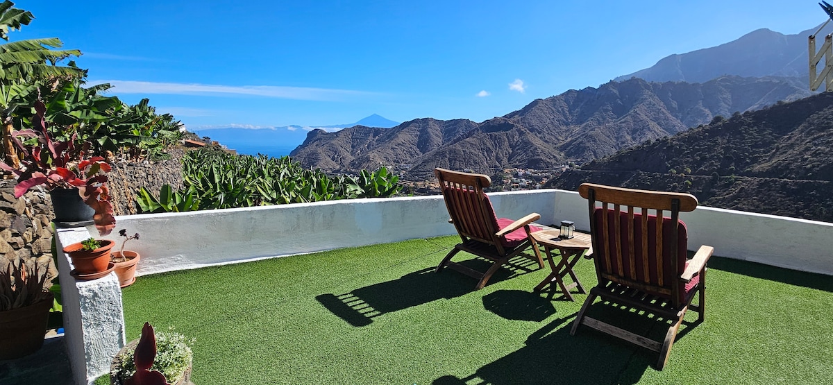 Casa Juan est une maison en pierre restaurée, devant la majestueuse montagne de la Table de Fortaleza... sans voisins et avec une vue fantastique sur l'océan. Si vous cherchez un endroit calme et agréable, où vous pouvez échapper à toute l'agitation pour vous calmer et vous ressourcer... c'est ici... ! La maison est située à 850 m au-dessus du niveau de la mer, à proximité du parc national, et il y a de nombreux sentiers de randonnée à côté. Il faut 35 min pour descendre à la plage de Valle Gran Ray, en voiture. Une voiture de location est nécessaire !